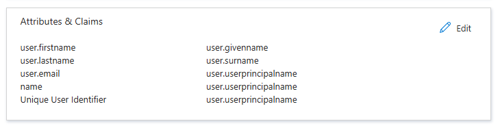 - On the SAML-based Sign-on screen, Edit the User Attributes & Claims to remove existing Claims and Add the Claims below: