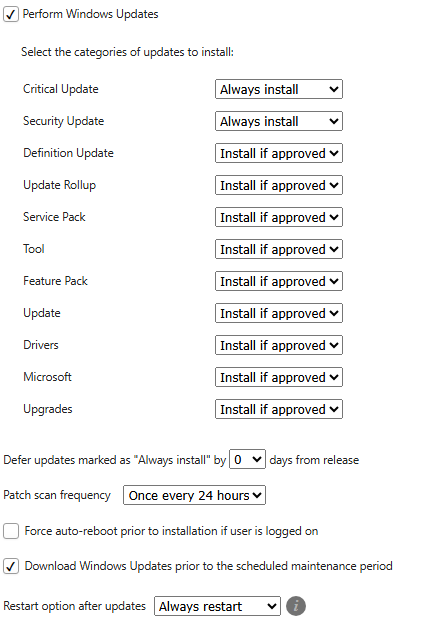 These options will target and install updates matching the categories specified based on the classifications provided by Microsoft for that machine.